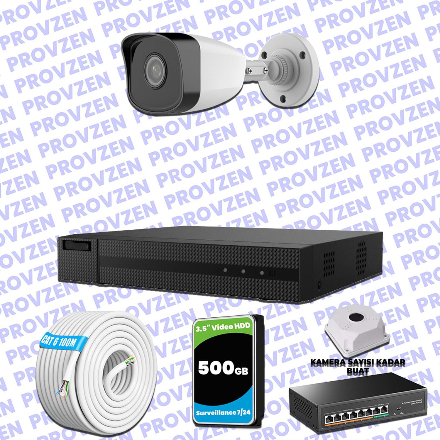 PROVZEN HILOOK-HIKVISION KAMERA SETİ, 1080P çözünürlüğe sahip, 500GB HDD depolama alanıyla ve gece görüşlü bir set.