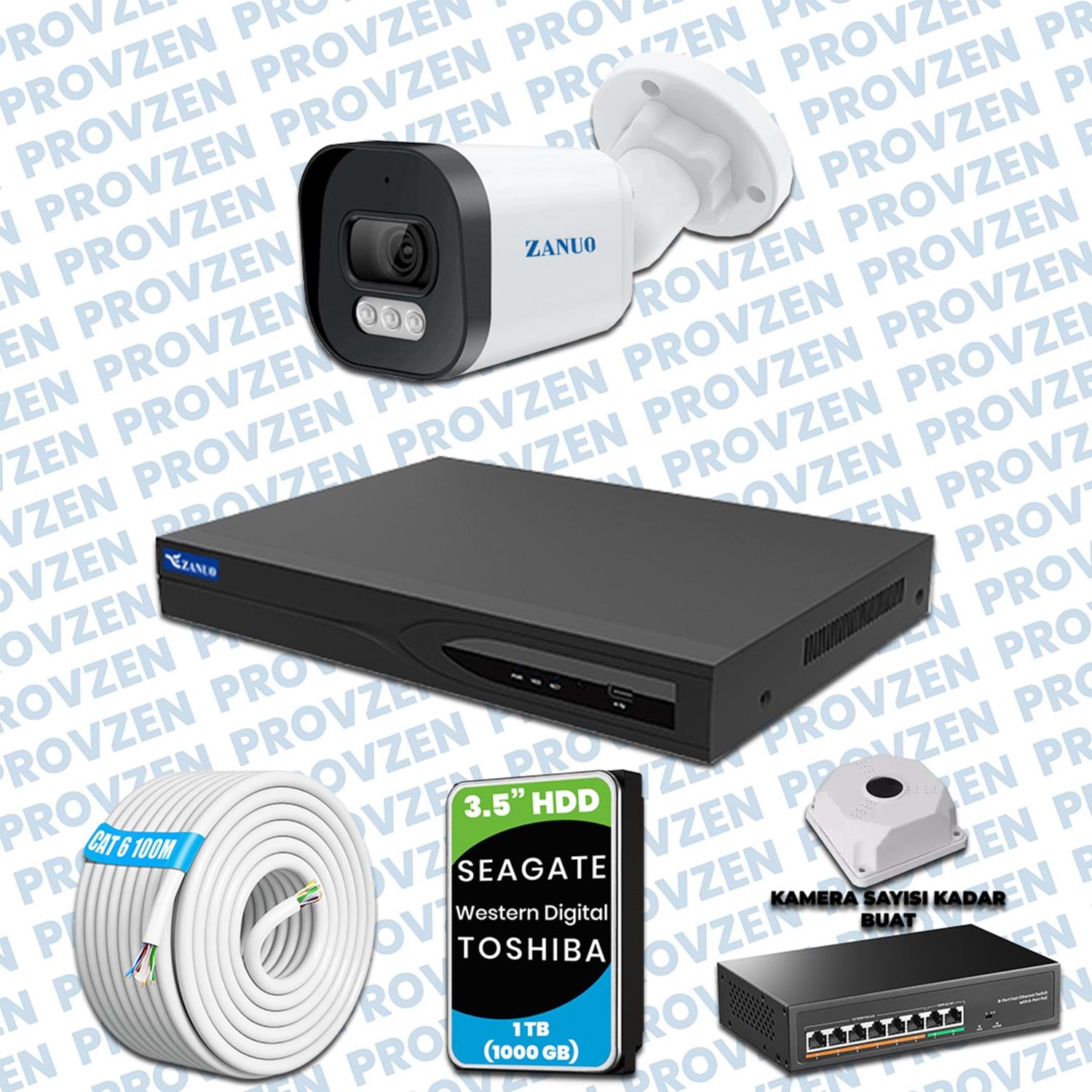 PROVZEN ZANUO KAMERA SETİ, 1440P çözünürlüğe sahip, 1TB(1000GB) HDD depolama alanıyla ve gece görüşlü bir set.