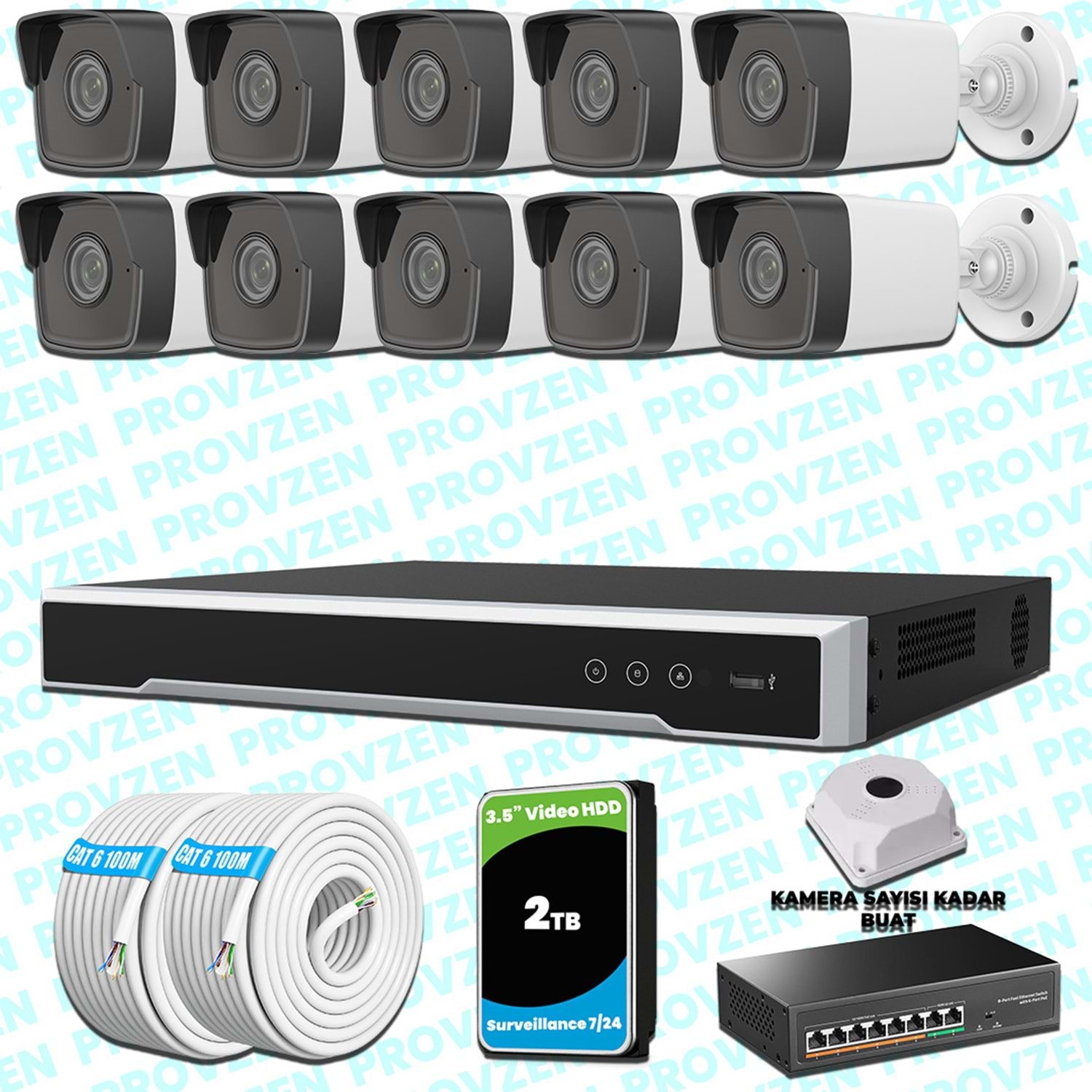 PROVZEN HİKVİSİON KAMERA SETİ, 1440P çözünürlüğe sahip, 2TB(2000GB) HDD depolama alanıyla ve gece görüşlü bir set.