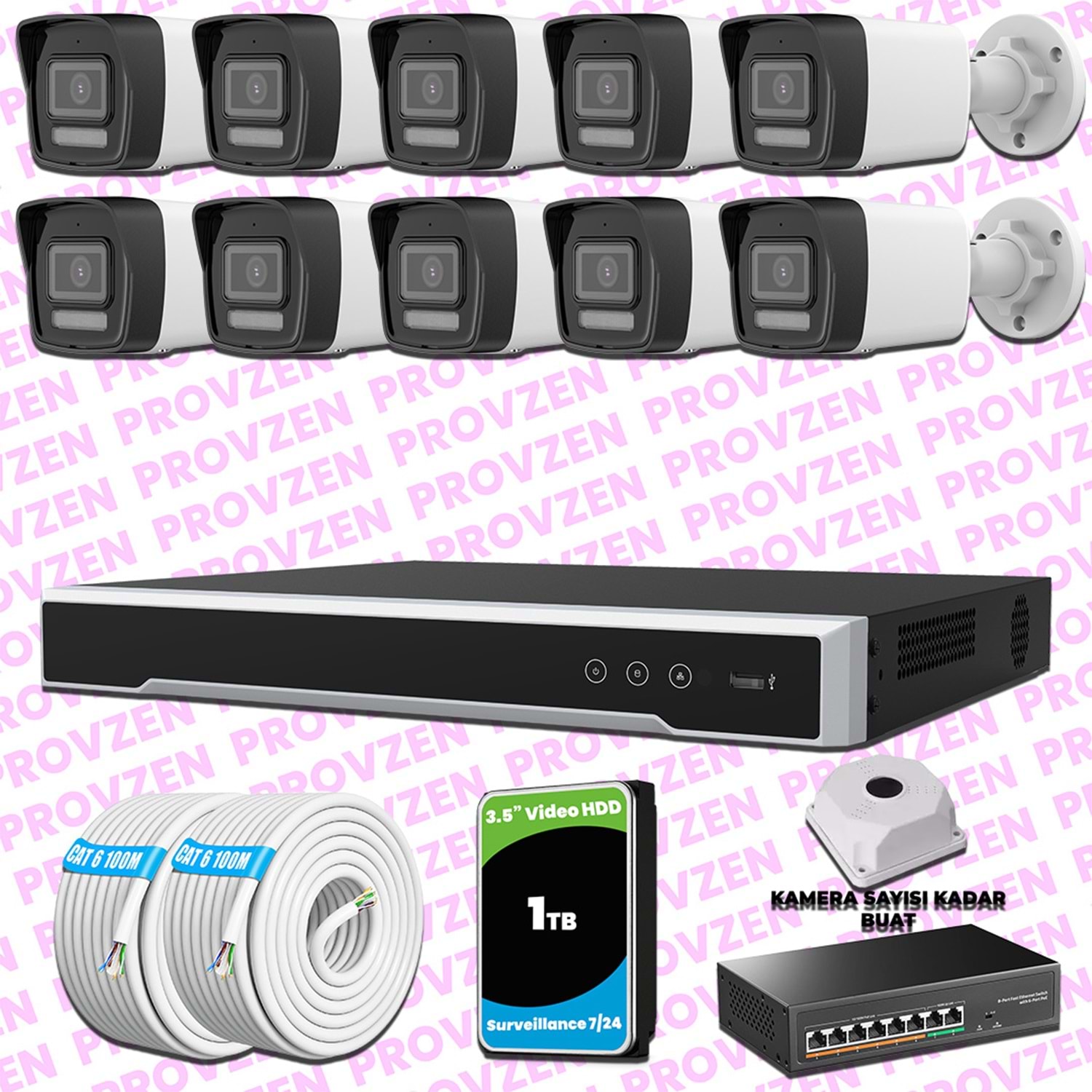 PROVZEN HIKVISION İP 10 KAMERALI SET 1080P COLORVU MİKROFONLU