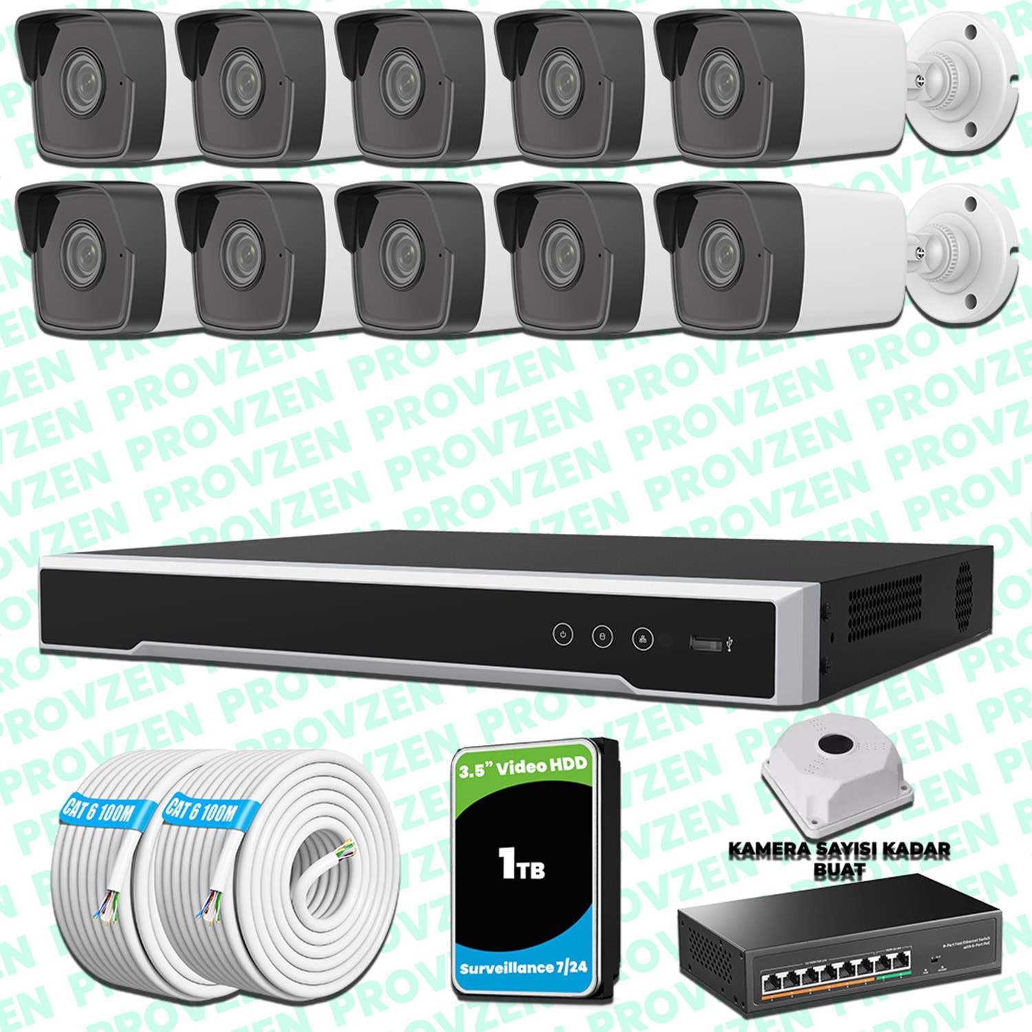 PROVZEN HİKVİSİON KAMERA SETİ, 1080P çözünürlüğe sahip, 1TB(1000GB) HDD depolama alanıyla ve gece görüşlü bir set.