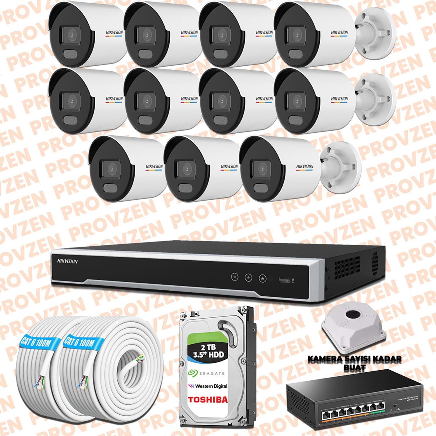PROVZEN HIKVISION 11 İP KAMERALI 4MP COLORVU DAHİLİ MİKROFON SET