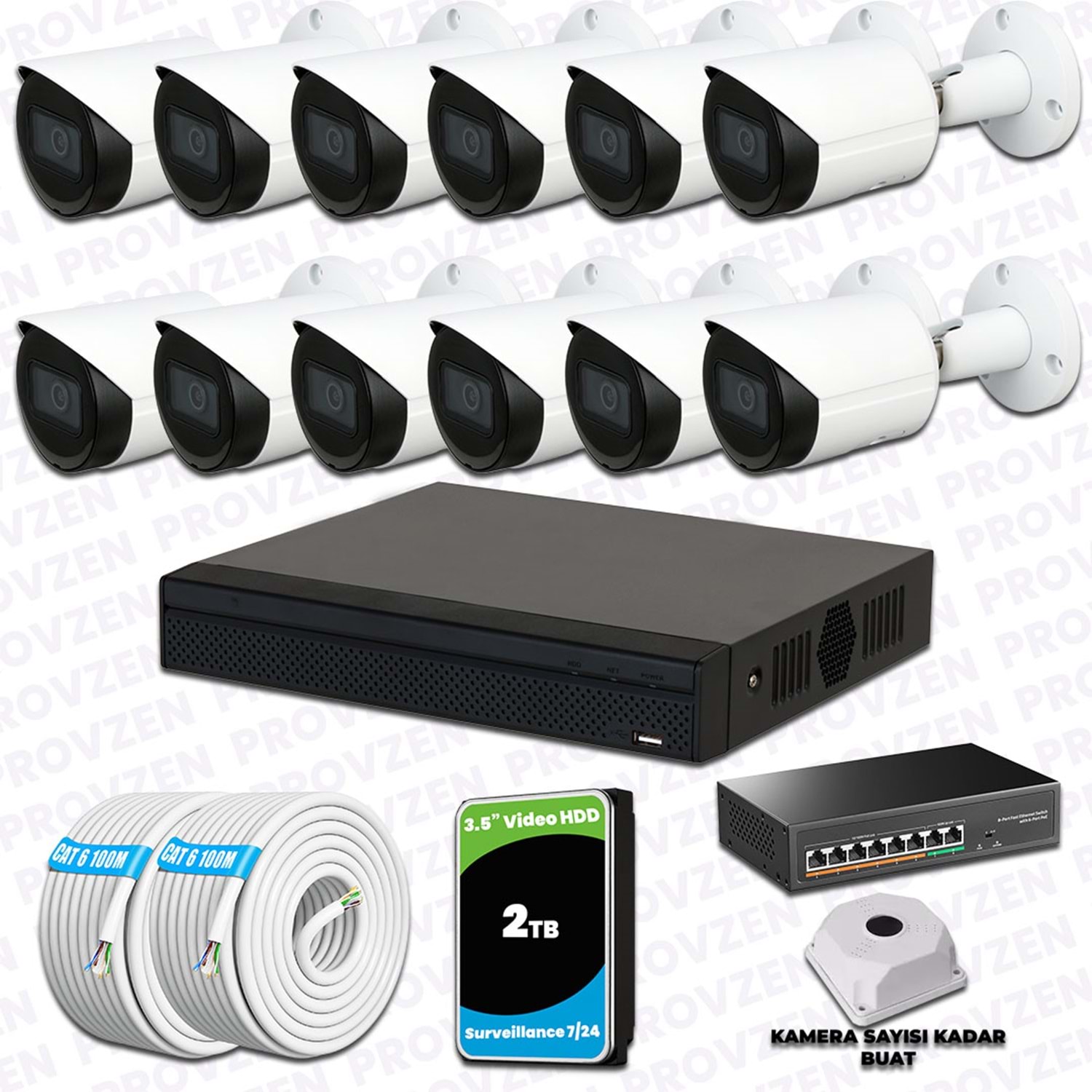PROVZEN DAHUA 12 KAMERALI İP KAMERA SETİ 1440P GECE GÖRÜŞLÜ