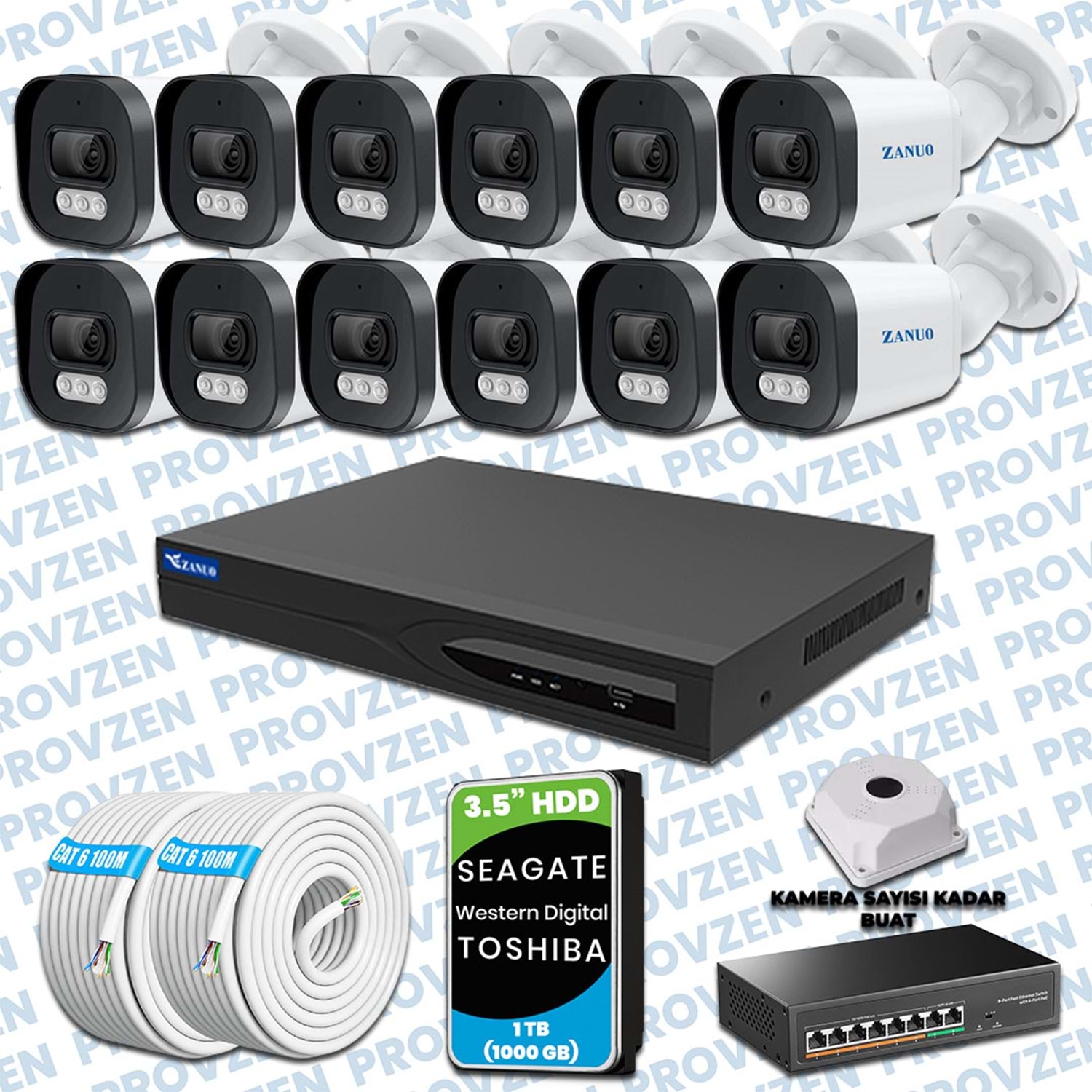 PROVZEN ZANUO KAMERA SETİ, 1080P çözünürlüğe sahip, 1TB(1000GB) HDD depolama alanıyla ve gece görüşlü bir set.
