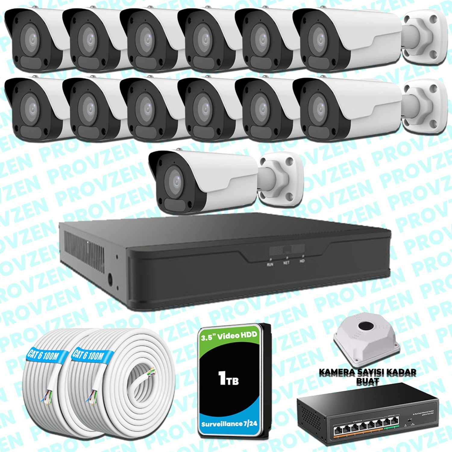 PROVZEN Uniview KAMERA SETİ, 1080P çözünürlüğe sahip, 1TB(1000GB) HDD depolama alanıyla ve gece görüşlü bir set.