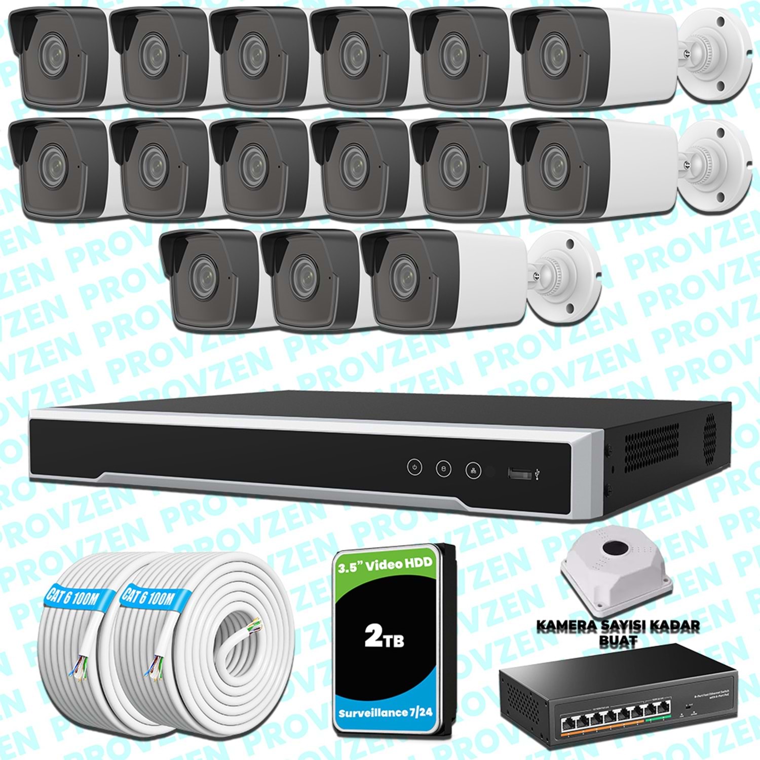 PROVZEN HİKVİSİON KAMERA SETİ, 1440P çözünürlüğe sahip, 2TB(2000GB) HDD depolama alanıyla ve gece görüşlü bir set.