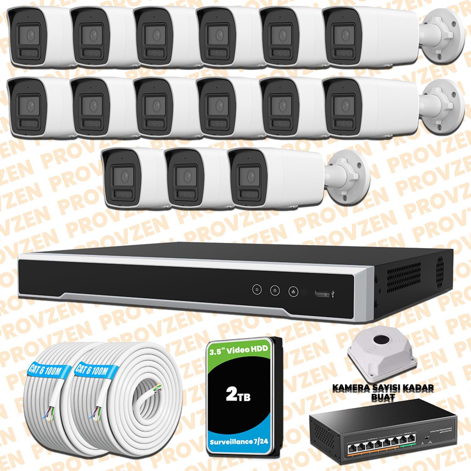 PROVZEN HİKVİSİON KAMERA SETİ, 1440P çözünürlüğe sahip, 2TB(2000GB) HDD depolama alanıyla ve gece görüşlü bir set.