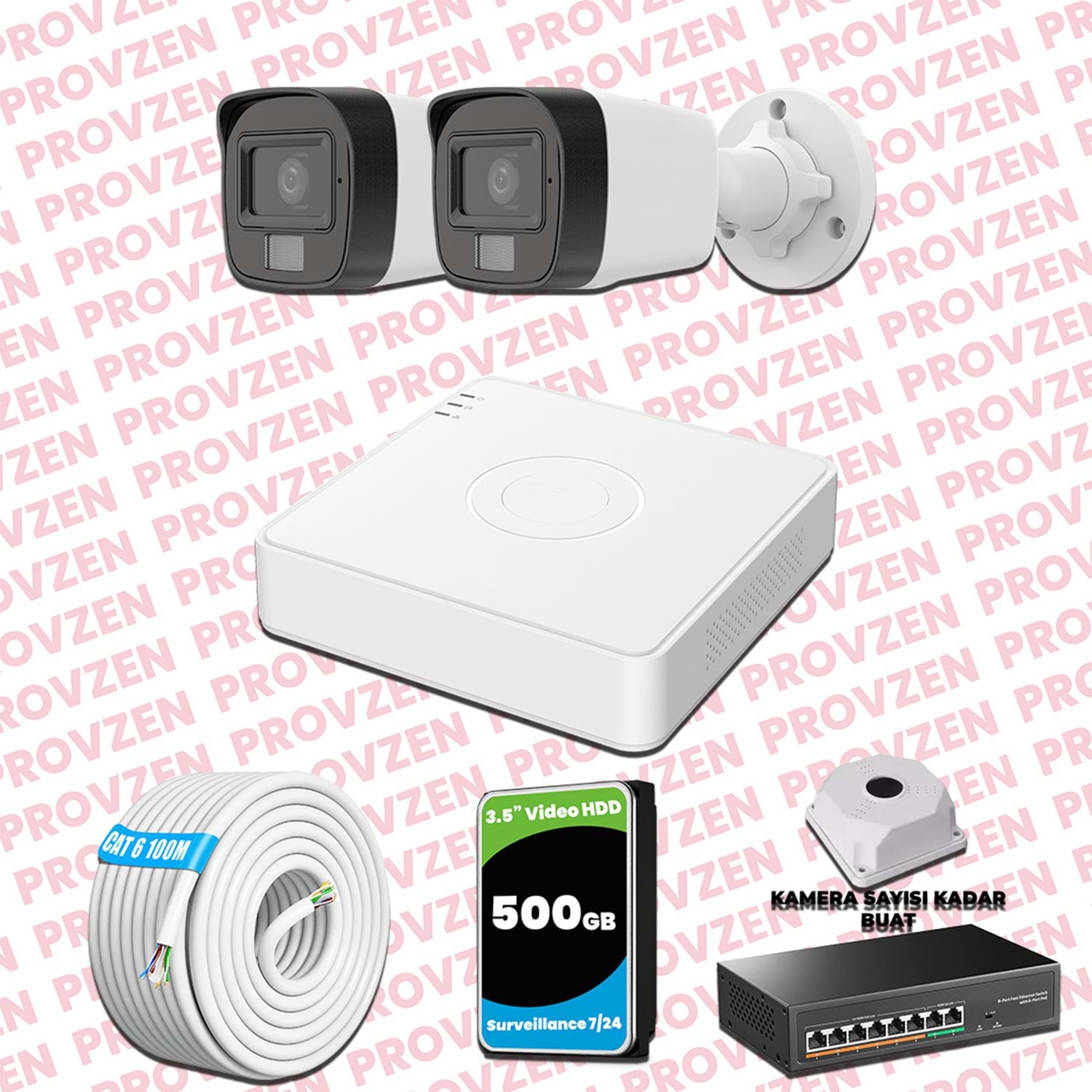 Provzen Hikvision 2 Kameralı IP Set Renkli Gece Görüşlü Mikrofonlu 2MP