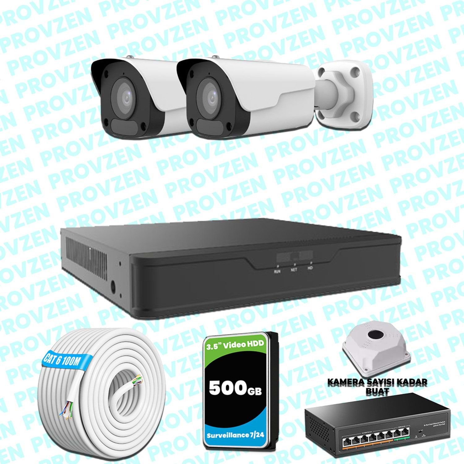 PROVZEN Uniview KAMERA SETİ, 1080P çözünürlüğe sahip, 500GB HDD depolama alanıyla ve gece görüşlü bir set.