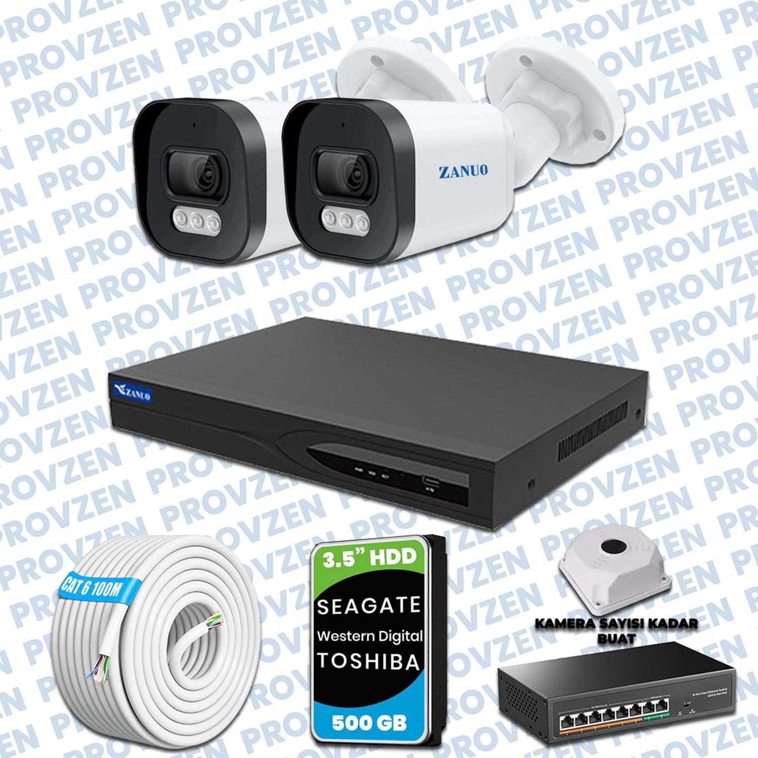 PROVZEN ZANUO KAMERA SETİ, 1080P çözünürlüğe sahip, 500GB HDD depolama alanıyla ve gece görüşlü bir set.