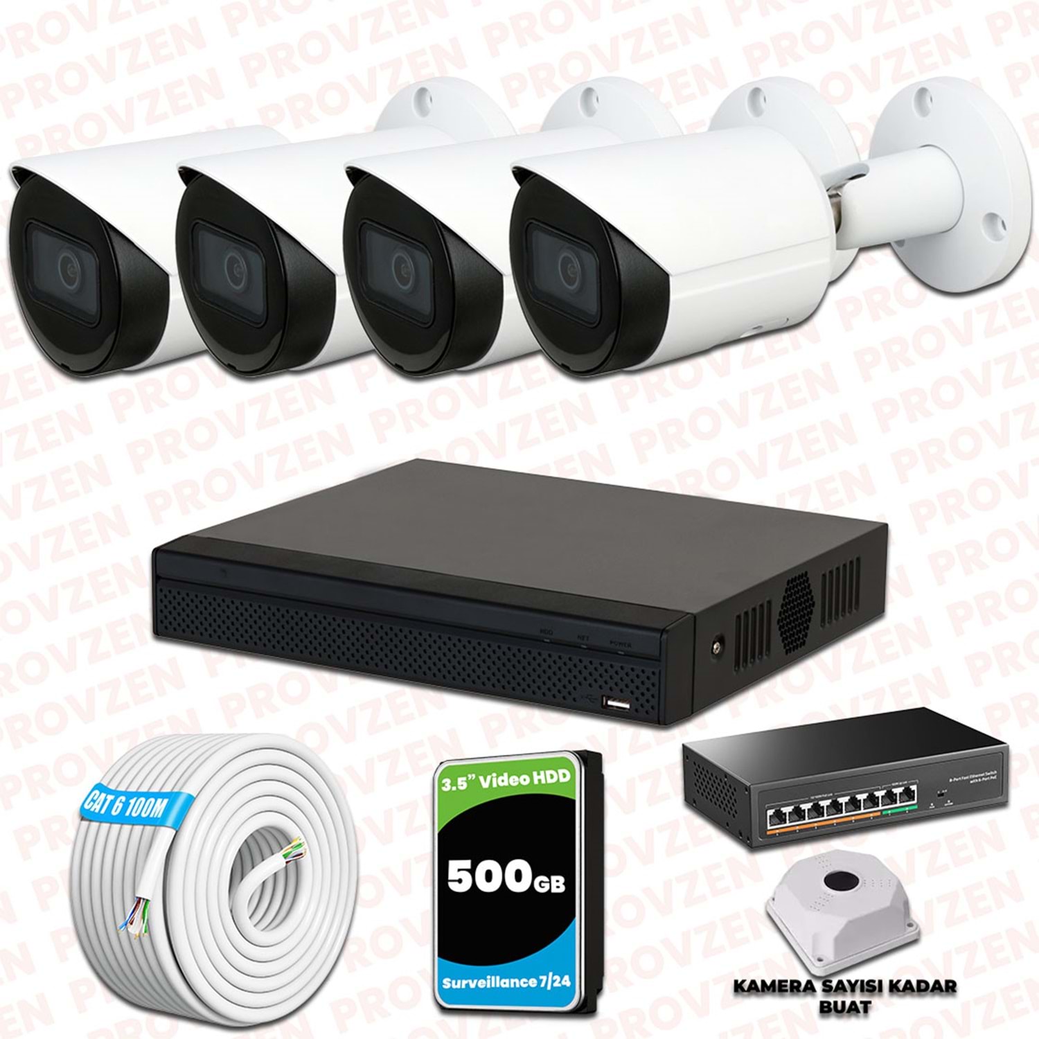 PROVZEN DAHUA KAMERA SETİ, 1080P çözünürlüğe sahip, 500GB HDD depolama alanıyla ve gece görüşlü bir set.