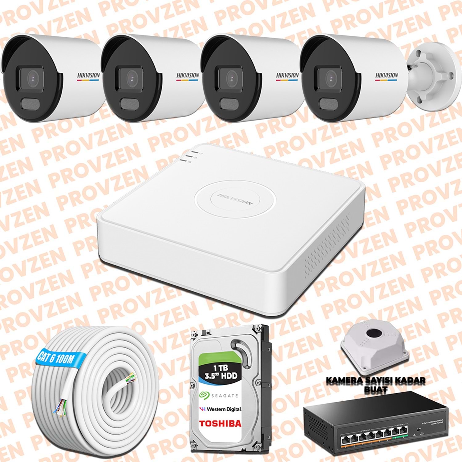 PROVZEN HIKVISION 4 İP KAMERALI 4MP COLORVU DAHİLİ MİKROFON SET