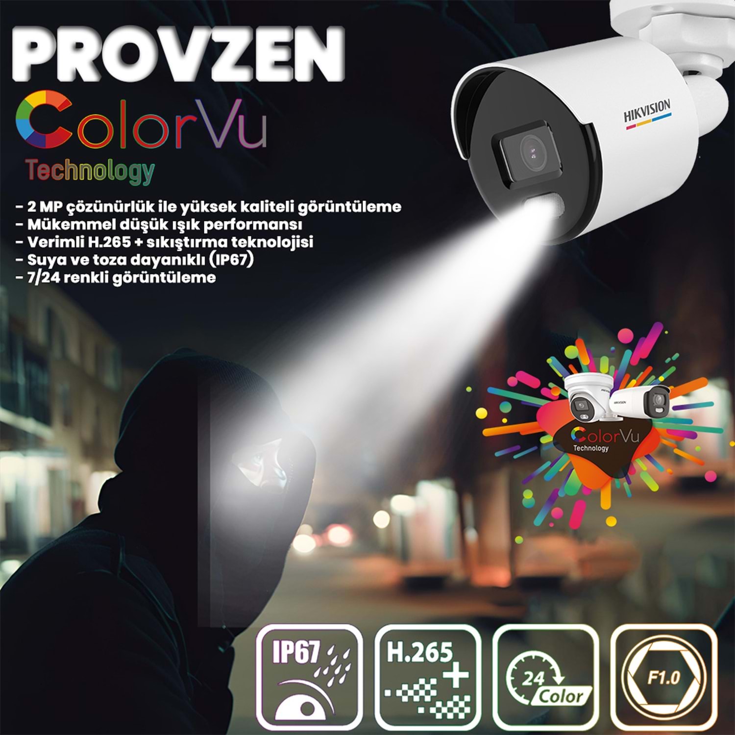 PROVZEN HIKVISION 4 KAMERA İP SET 7/24 RENKLİ COLORVU MİKROFONLU