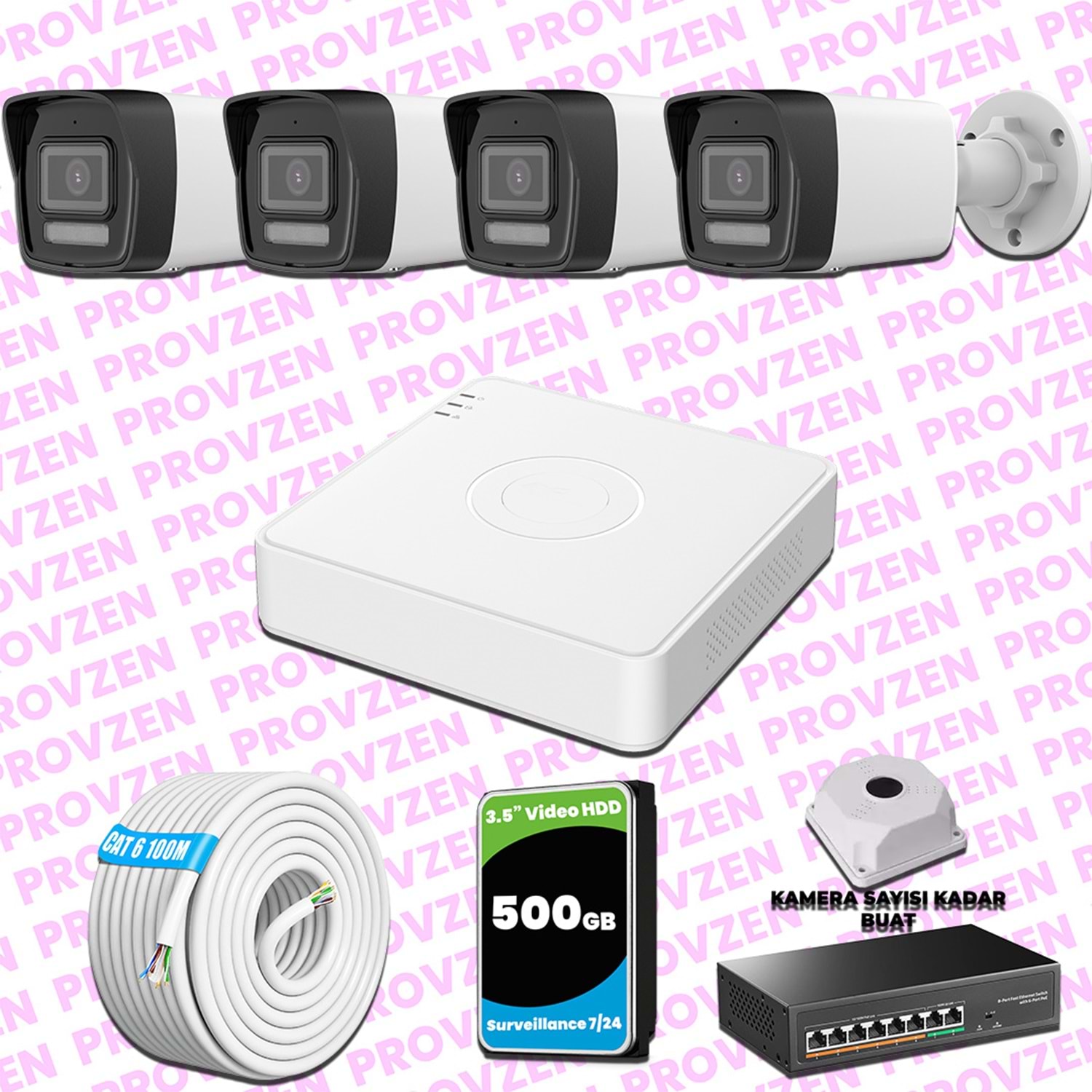 PROVZEN HIKVISION İP 4 KAMERALI SET 1080P COLORVU MİKROFONLU