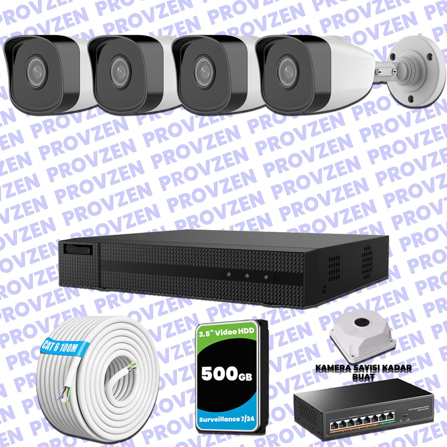PROVZEN HILOOK-HIKVISION KAMERA SETİ, 1080P çözünürlüğe sahip, 500GB HDD depolama alanıyla ve gece görüşlü bir set.