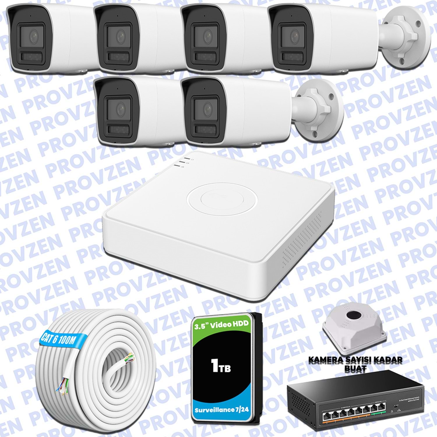 PROVZEN HİKVİSİON KAMERA SETİ, 1080P çözünürlüğe sahip, 1TB(1000GB) HDD depolama alanıyla ve gece görüşlü bir set.