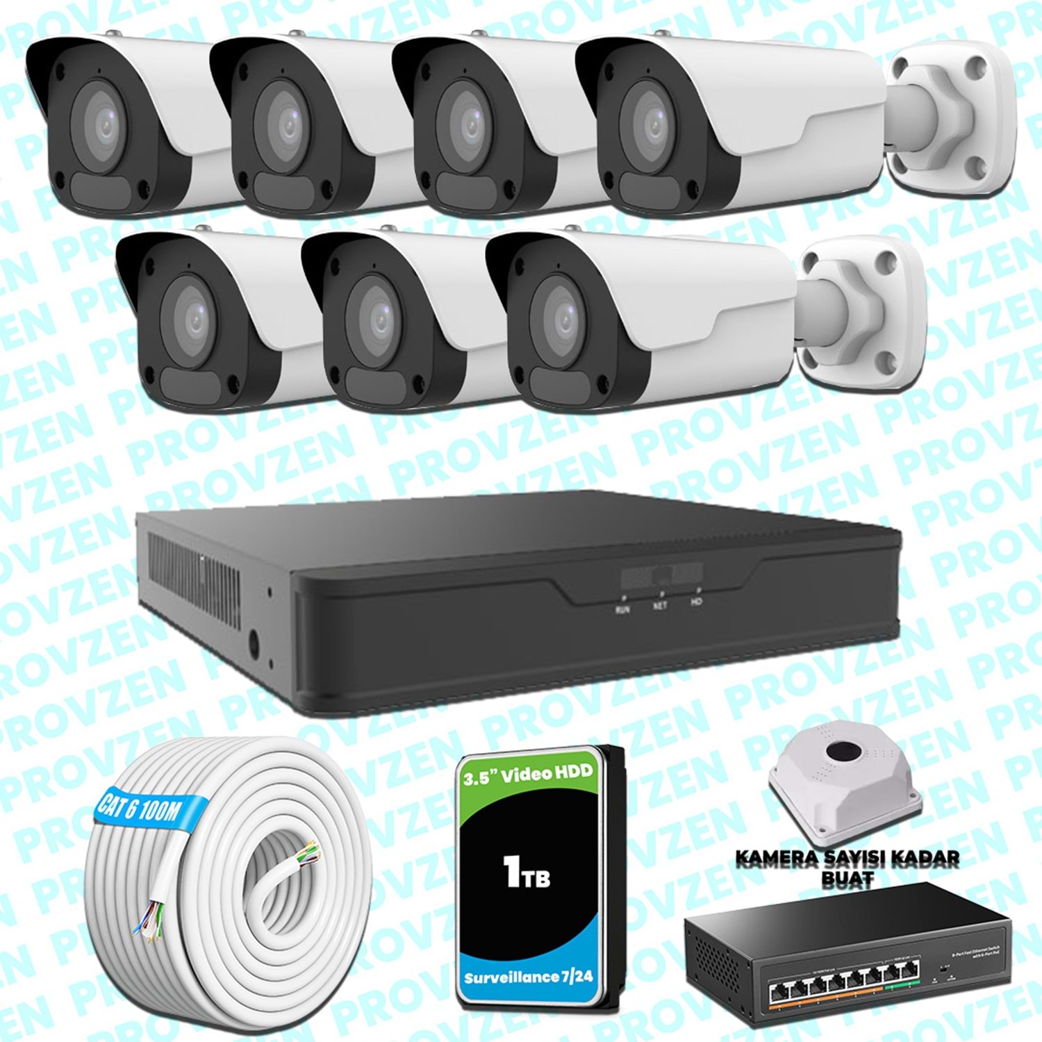 PROVZEN Uniview KAMERA SETİ, 1080P çözünürlüğe sahip, 1TB(1000GB) HDD depolama alanıyla ve gece görüşlü bir set.