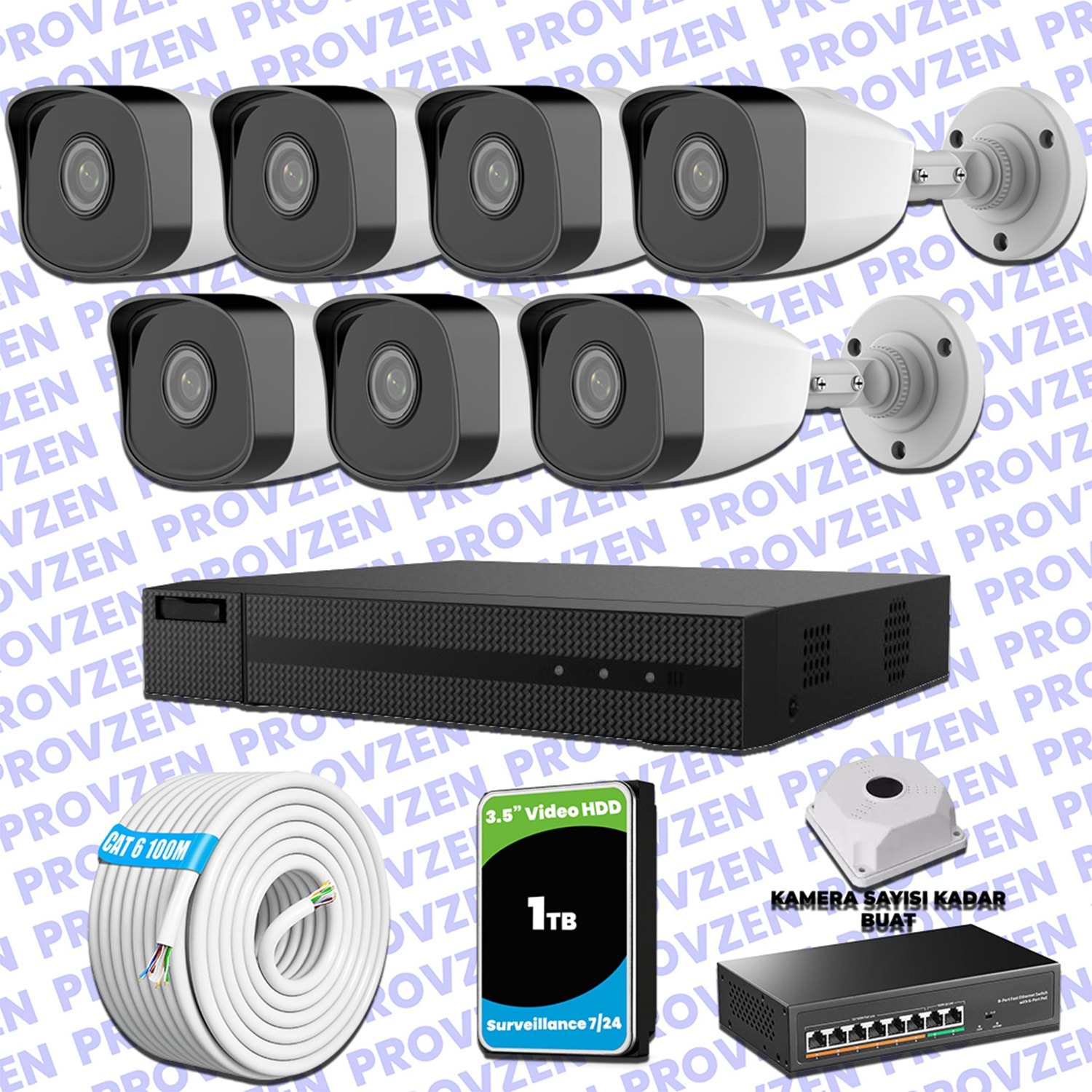 PROVZEN HILOOK-HIKVISION KAMERA SETİ, 1080P çözünürlüğe sahip, 1TB(1000GB) HDD depolama alanıyla ve gece görüşlü bir set.