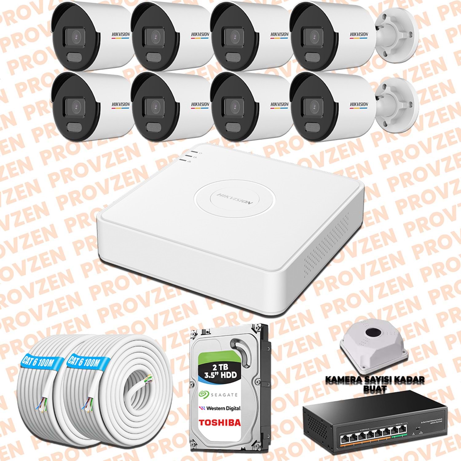 PROVZEN HIKVISION 8 İP KAMERALI 4MP COLORVU DAHİLİ MİKROFON SET