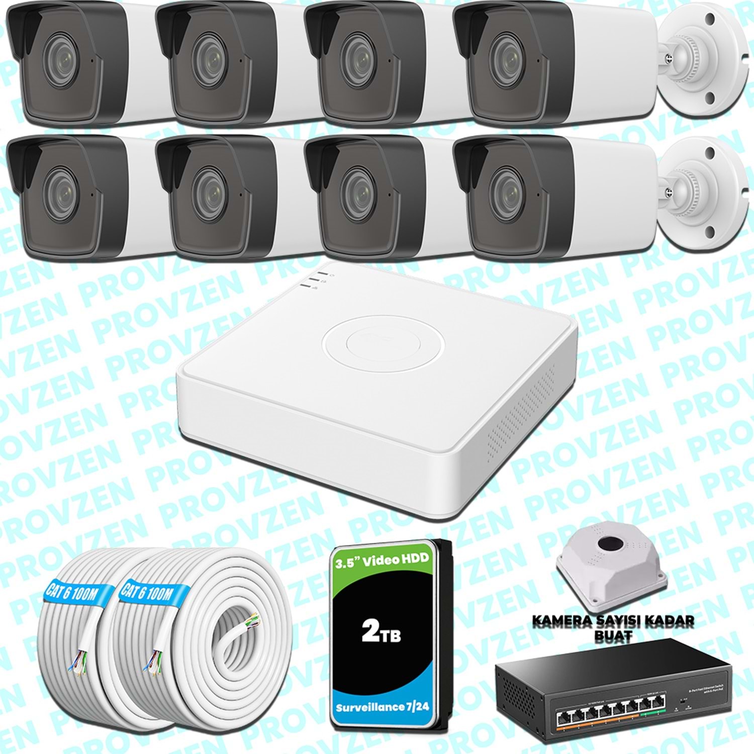 PROVZEN HİKVİSİON KAMERA SETİ, 1440P çözünürlüğe sahip, 2TB(2000GB) HDD depolama alanıyla ve gece görüşlü bir set.