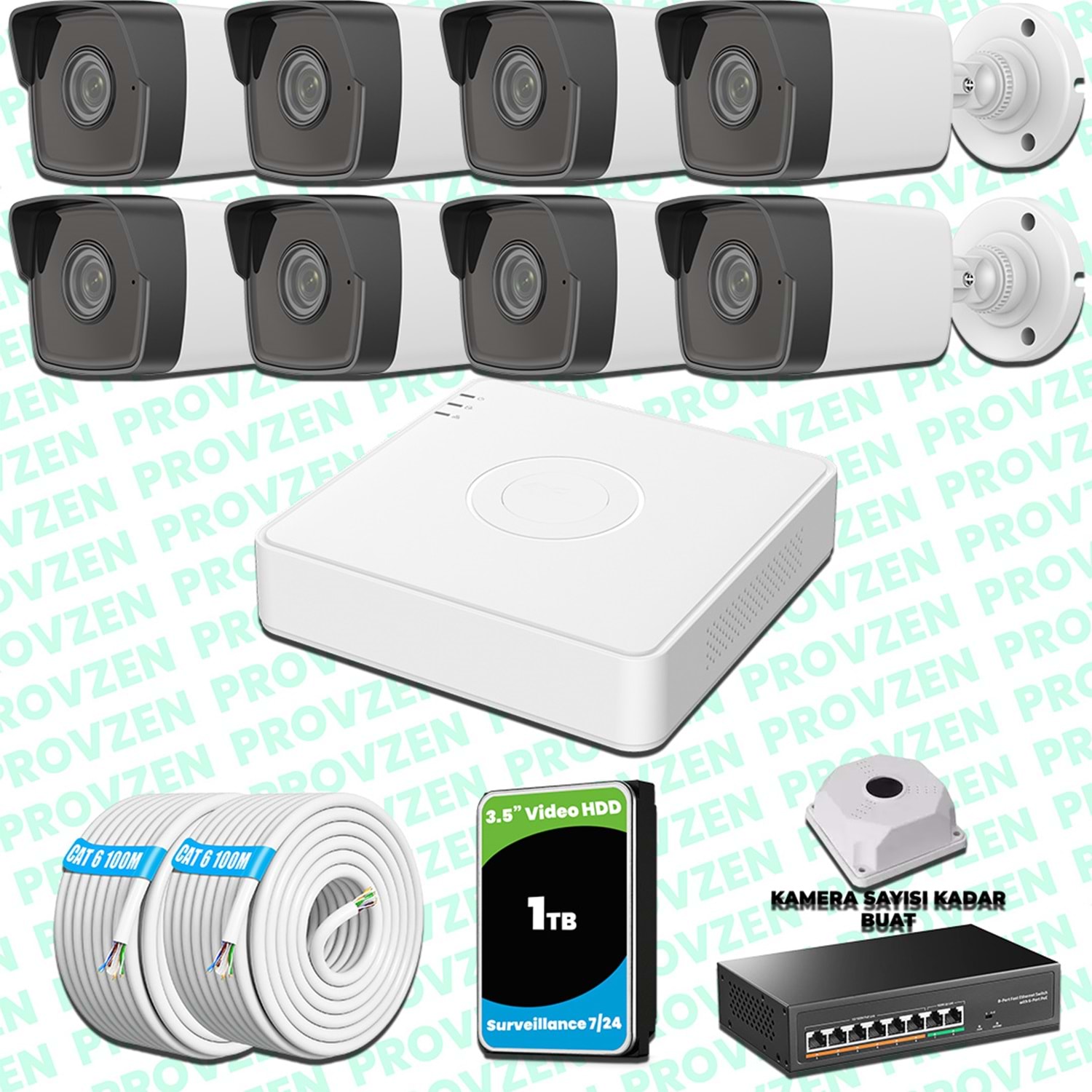 PROVZEN HİKVİSİON KAMERA SETİ, 1080P çözünürlüğe sahip, 1TB(1000GB) HDD depolama alanıyla ve gece görüşlü bir set.