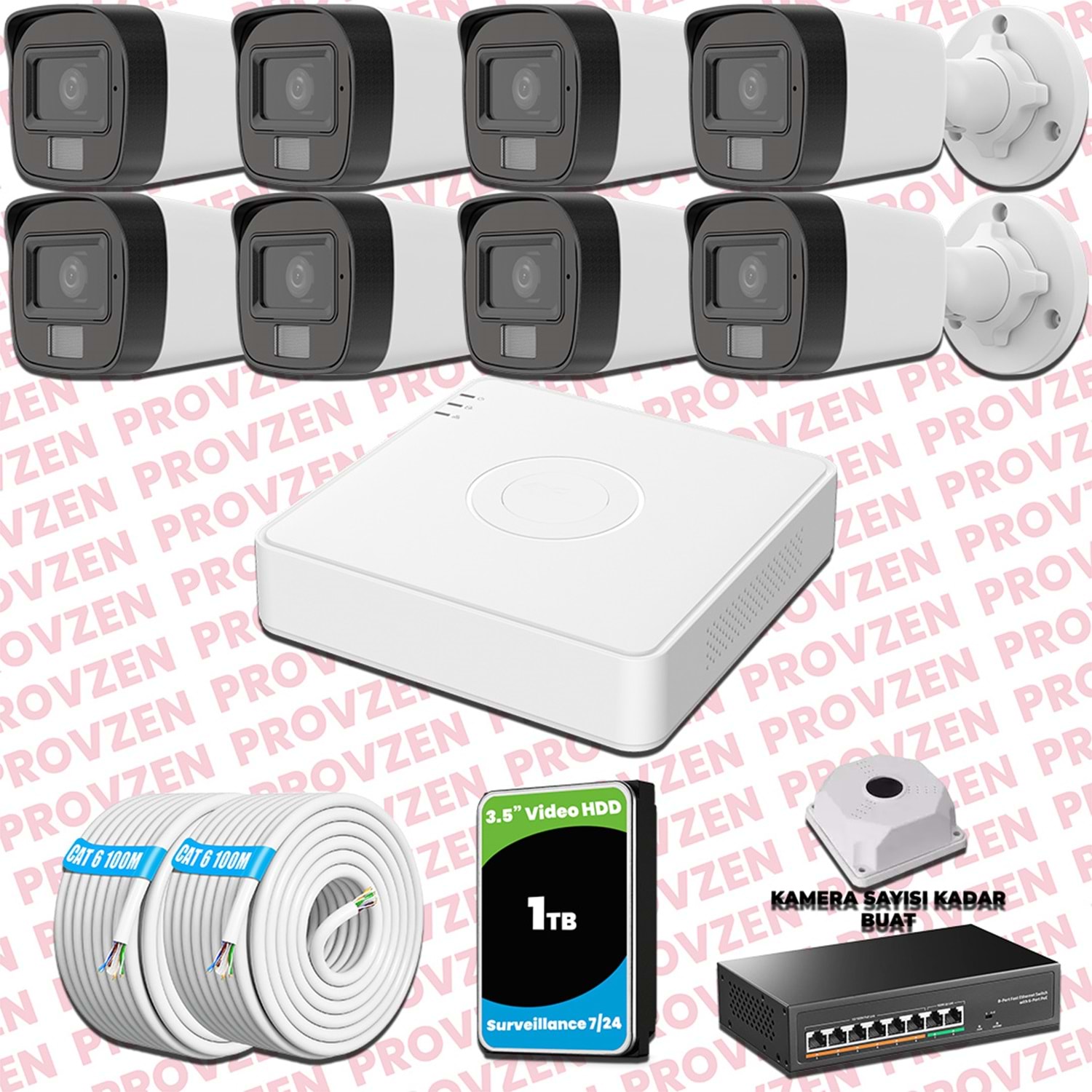 Provzen Hikvision 8 Kameralı IP Set Renkli Gece Görüşlü Mikrofonlu 2MP