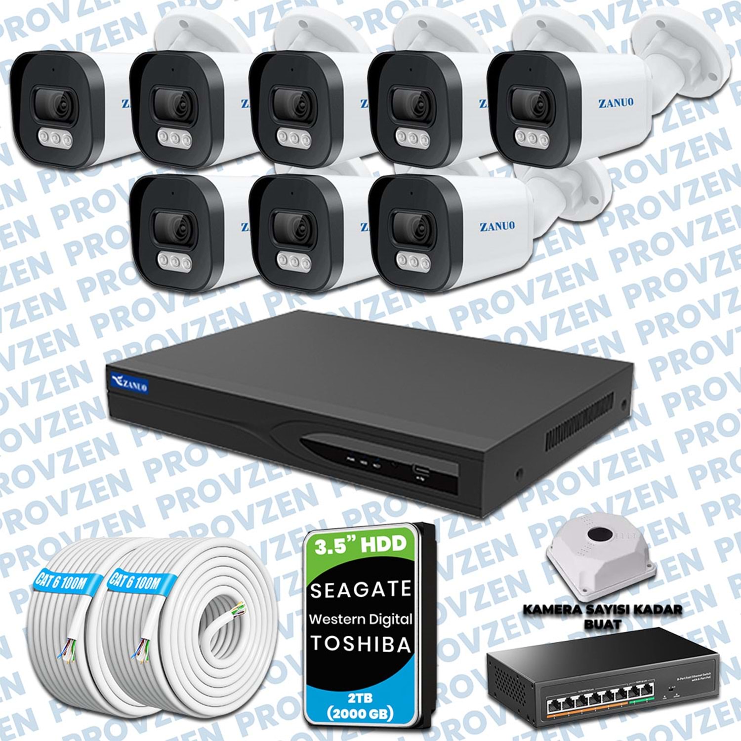 PROVZEN ZANUO KAMERA SETİ, 1440P çözünürlüğe sahip, 2TB(2000GB) HDD depolama alanıyla ve gece görüşlü bir set.