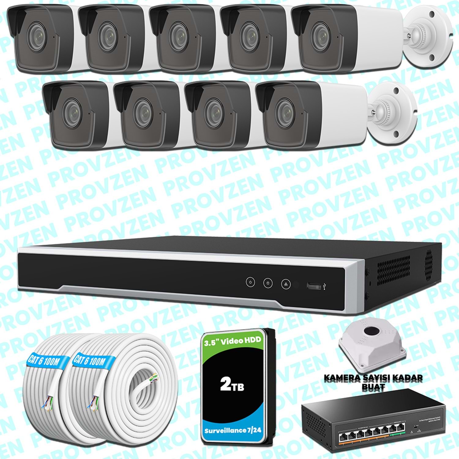 PROVZEN HİKVİSİON KAMERA SETİ, 1440P çözünürlüğe sahip, 2TB(2000GB) HDD depolama alanıyla ve gece görüşlü bir set.