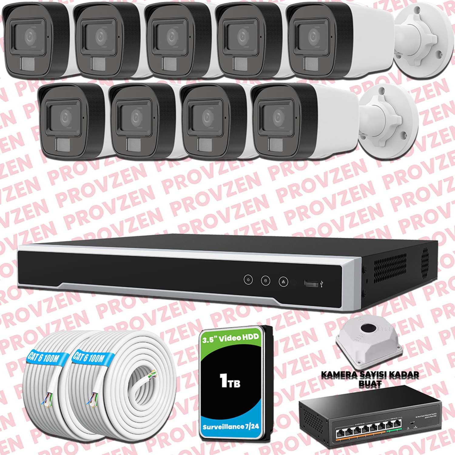 Provzen Hikvision 9 Kameralı IP Set Renkli Gece Görüşlü Mikrofonlu 2MP