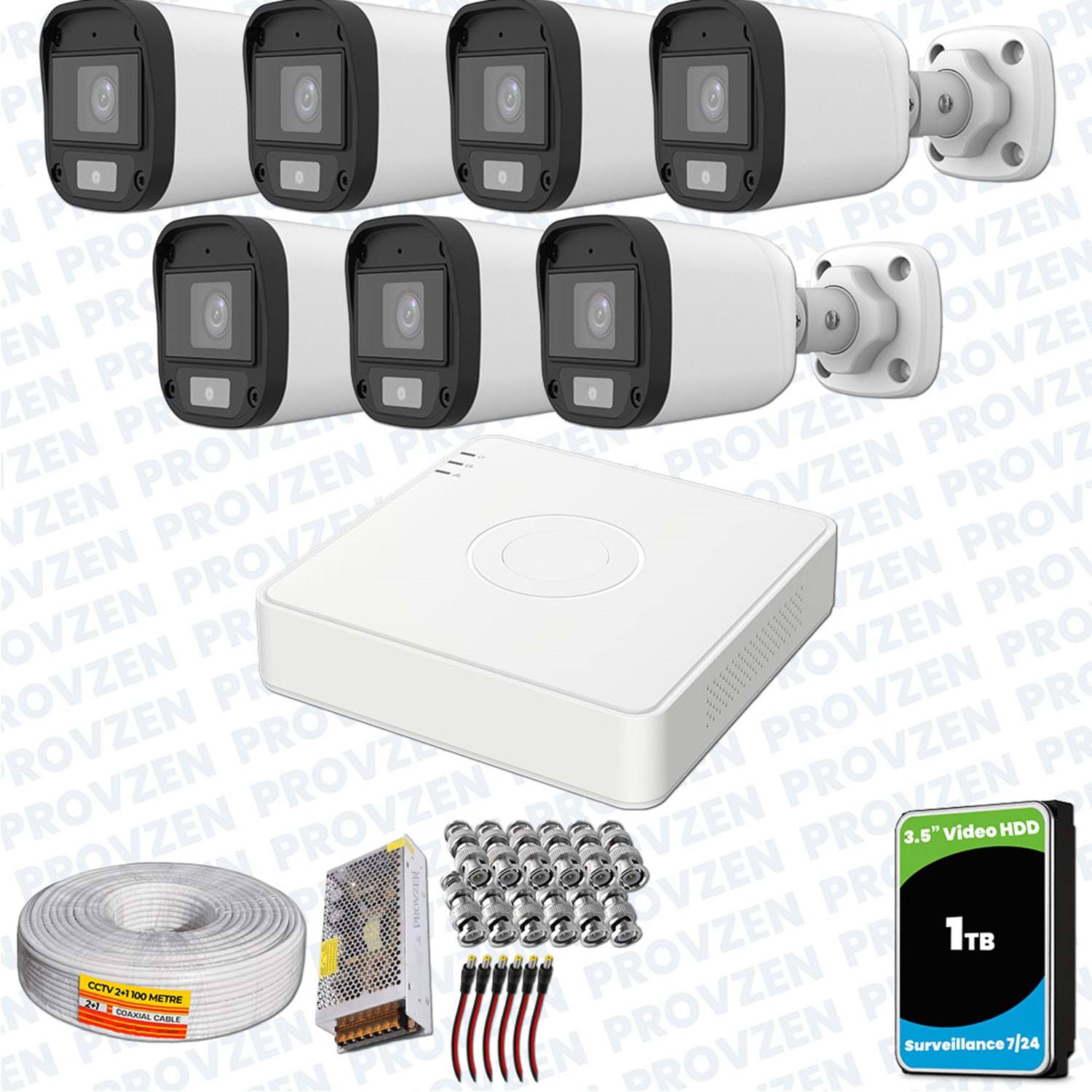 PROVZEN HİKVİSİON KAMERA SETİ, 1080P çözünürlüğe sahip, 1TB(1000GB) HDD depolama alanıyla ve gece görüşlü bir set.