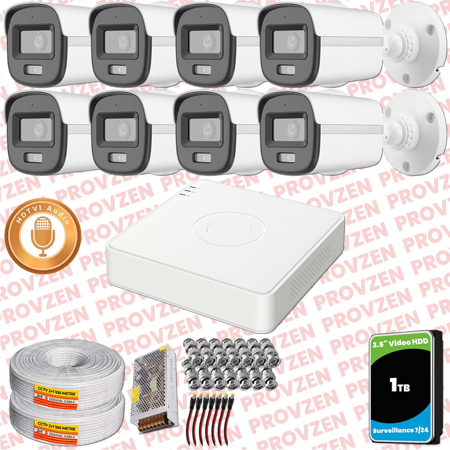 PROVZEN HİKVİSİON güvenlik kamerası seti, 2MP Full HD çözünürlük, 1TB(1000GB) HDD depolama alanı ve Renkli gece görüş özelliği ile ev ve iş yerleriniz için profesyonel güvenlik sağlar. Dahili mikrofon desteği sayesinde hem görüntü hem de ses kaydı alabilirsiniz.